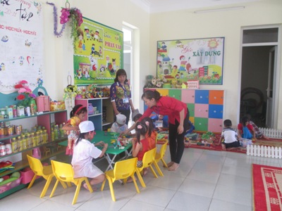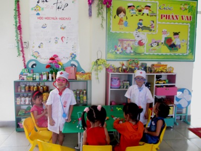 Trường mầm non An Sinh A: Thực hiện tốt việc tổ chức hoạt động góc cho trẻ.