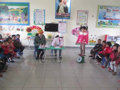 Trường Mầm Non An Sinh A: Tổ chức cân khám sức khỏe giai đoạn 1.