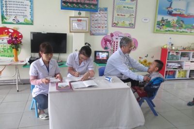 Thực hiện nhiệm vụ năm học 2016 - 2017 và kế hoạch nuôi dưỡng, chăm sóc sức khỏe cho trẻ, ngày 16/03/2016 trường Mầm non An Sinh A phối hợp với Trạm Y tế xã An Sinh tổ chức khám sức khỏe định kỳ lần 2 và cân, đo sức khỏe lần 3 cho toàn thể học sinh trong nhà trường.